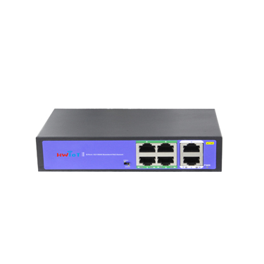 The HW-S3700-LI-4P2E is a 10/100M unmanaged PoE switch, with 4*10/100M PoE ports + 2*10/100M uplink RJ45 ports, 1-4 ports support IEEE 802.3af/at PoE standard,single port PoE power up to 30W, the maximum PoE output power of the whole machine is 60W. As a power supply device for PoE, it can automatically detect and recognize the power receiving equipment that meets the standard and supply power through the network cable. It can supply power to POE terminal equipment such as wireless AP, webcam, VoIP, video access control and intercom, through network cable, to meet the network environment that needs high-density PoE power supply. It is suitable for hotel, campus, factory dormitory and small and medium-sized enterprise. A cost-effective network.